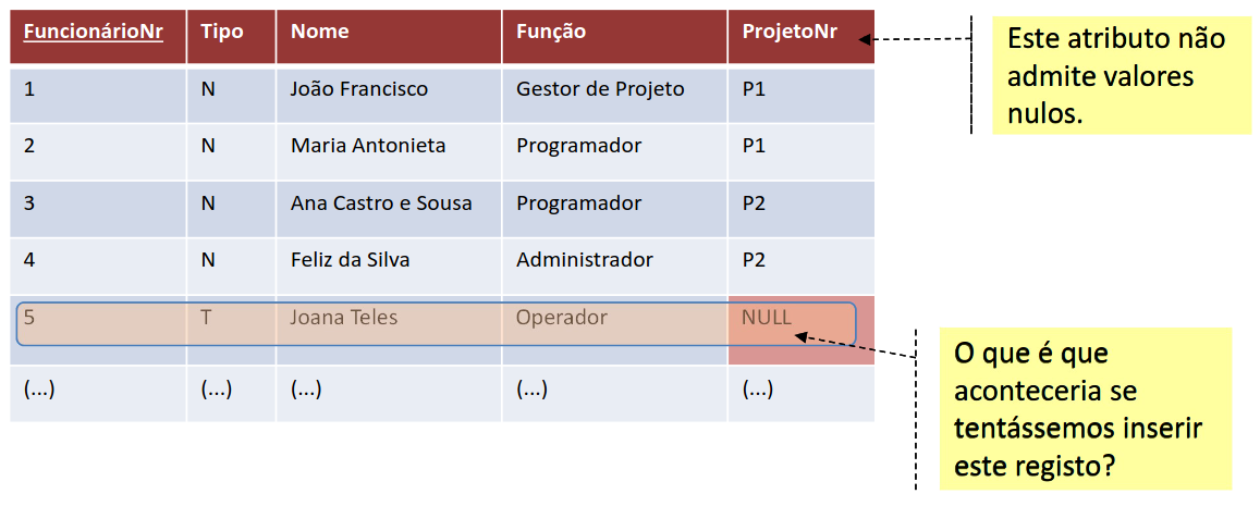 - Os atributos de uma dada tabela que contenham frequentemente valores nulos devem ser avaliados no sentido de serem colocados numa outra tabela com a mesma chave primária
