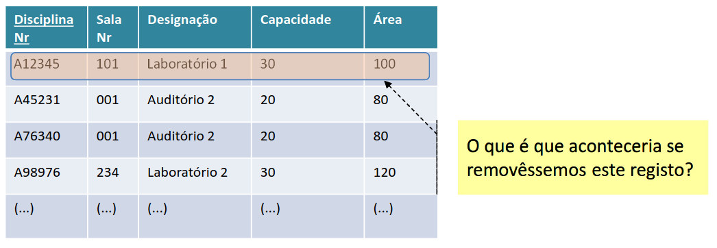 - Uma anomalia de remoção ocorre quando se perde informação base por causa da remoção de um ou outro registo numa mesma tabela.