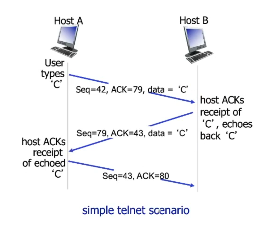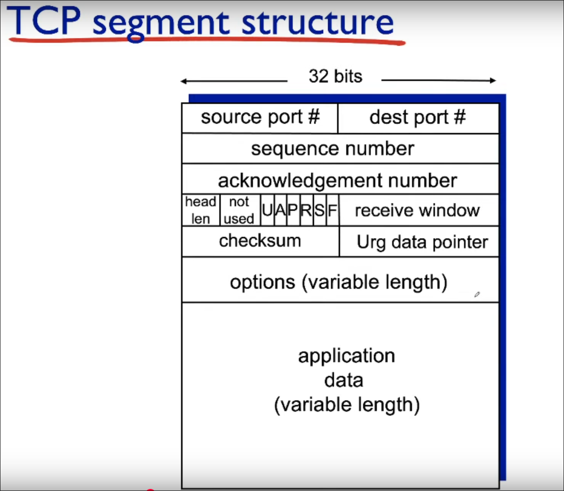 - full duplex data: -> bi-diretional data flow in same connection -> MSS: maximum segment size