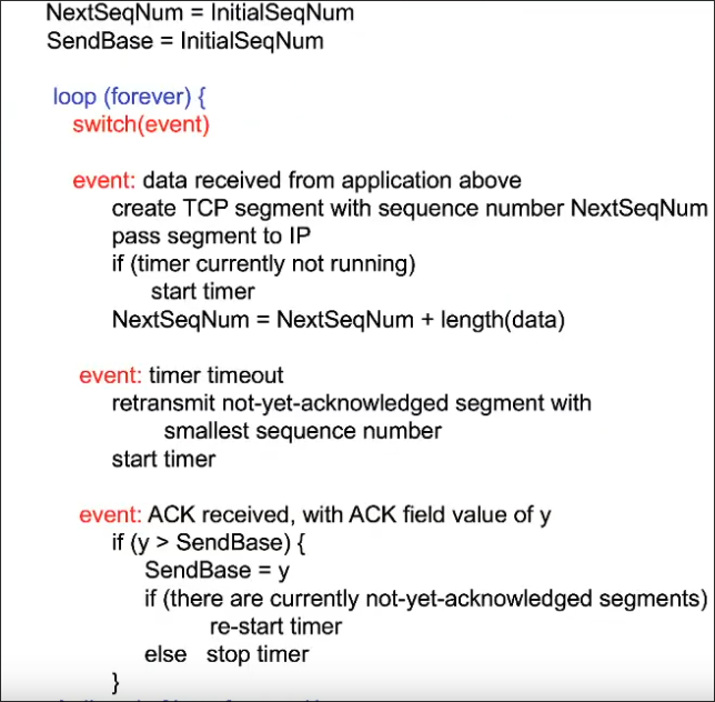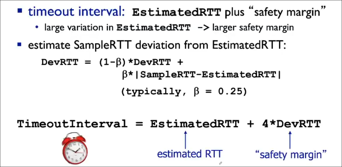 how to estimate RTT: SampleRTT: measured time from segment transmission until Ack receipt, ignore retransmissions