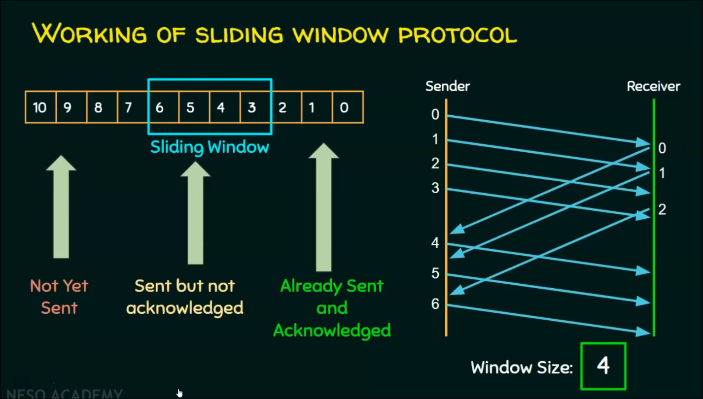 If window size is 4 it means 4 frames can be sent without getting an ack