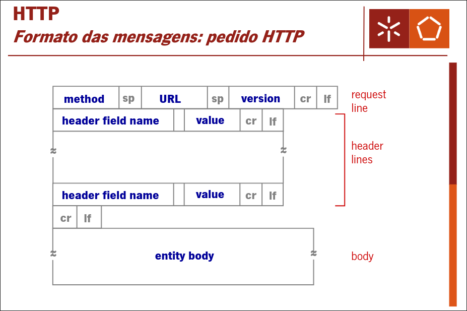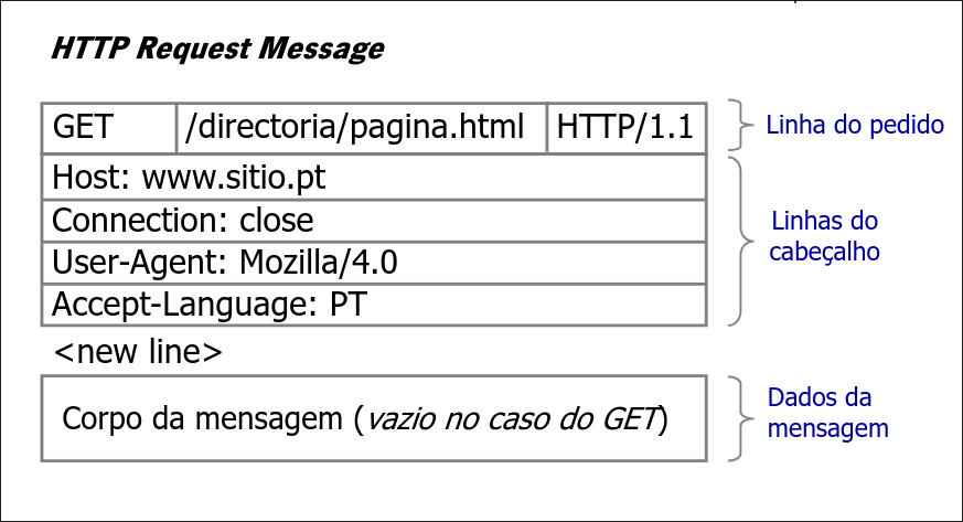 - O cliente cria um socket e inicia uma conexão TCP com um servidor HTTP (por defeito, à escuta na porta 80);