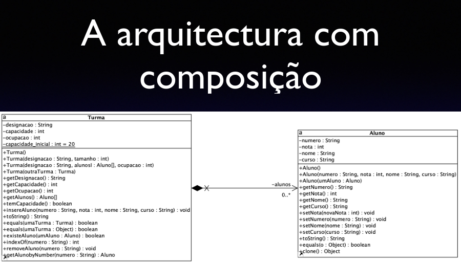 - Neste Caso as instâncias de Aluno já não são internas à Turma - partilha-se o apontador
