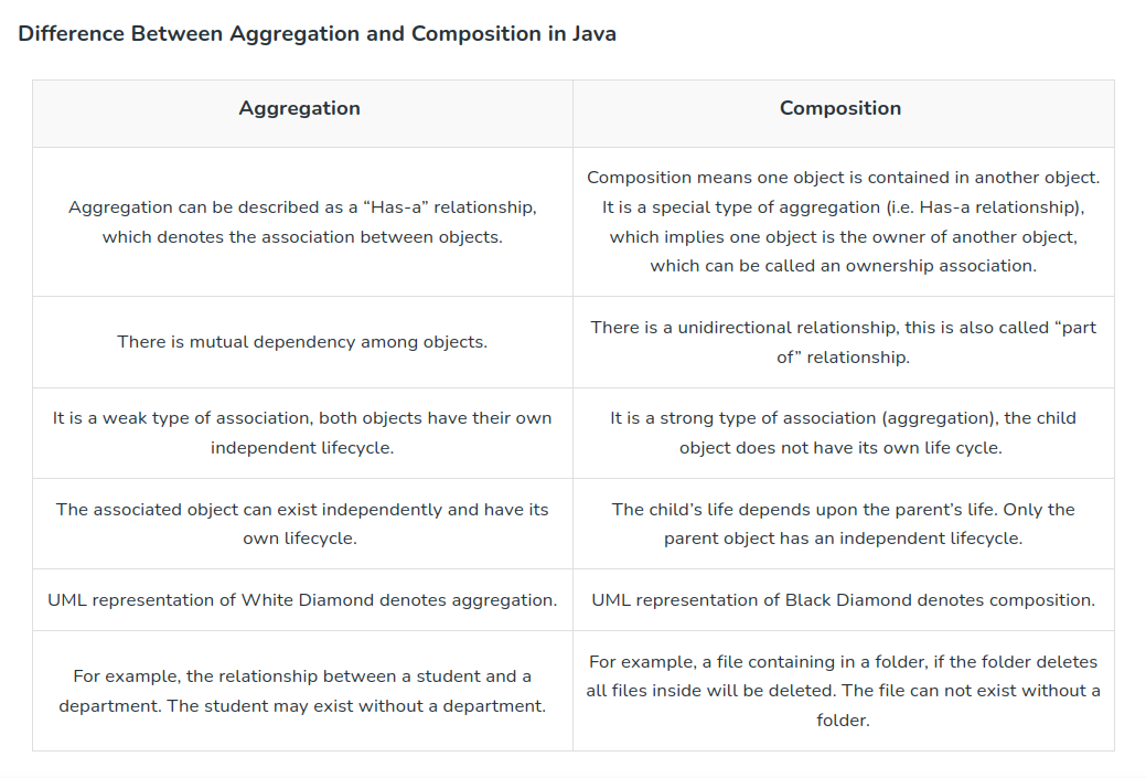 Agregação: -> guarda-se internamente o apontador dos objectos passados como parâmetro -> devolve-se sempre o apontador dos objectos e, caso seja solicitado, uma cópia da estrutura da dados que os guarda.