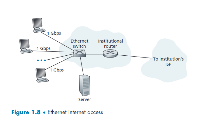 HFC -> uses a combination of fiber cable and coaxial cable DSL and Ethernet-> use copper wire Mobile Access Networks -> use the radio spectrum