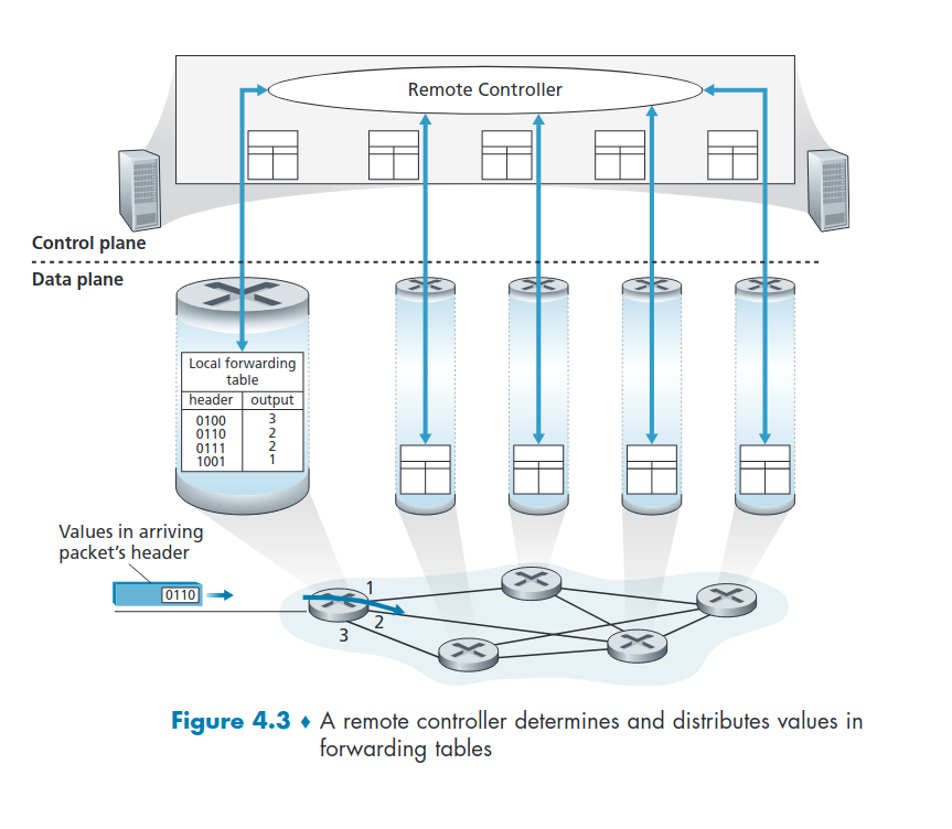- A physically separate, remote controller computes and distributes the forwarding tables to be used by each and every router's control agent(CAs).