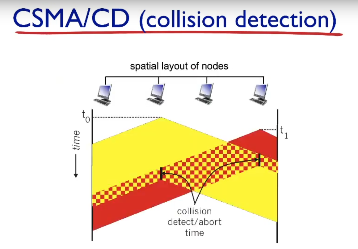 - CSMA/CD reduces the amount of time wasted in collisions