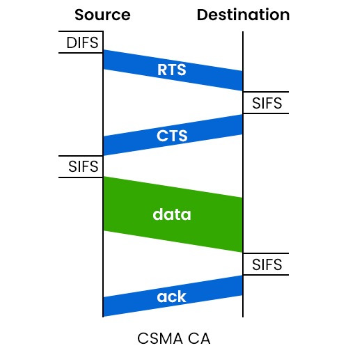| DIFS | Distributed Interframe Space | Used before starting new transmissions | Lower priority |